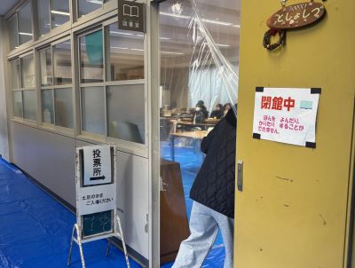 前回の投票から、投票場所が体育館から図書室に変更されて