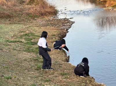 鴨島一中の生徒達は江川の沿岸の清掃作業をしてくれました。
