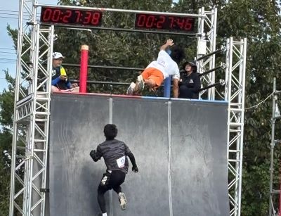 ゴールのフィニッシュウォールを登りきるまで目が離せません。
