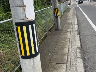国道318号の歩道が草に覆われて、自転車通学の生徒達が