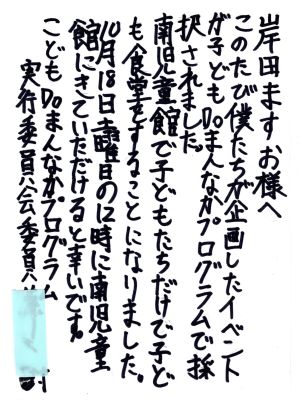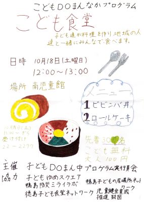 鴨島児童館に所用でお伺いしたら、子ども食堂への招待状を